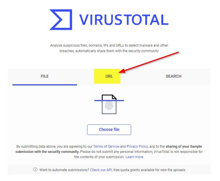 Nun wechseln Sie auf die Seite von virustotal und fügen dort unter URL den kopierten Link ein. Ein kurzes Video dazu finden Sie hier: