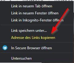 Um den Link aus Ihrer Mail oder von der Website zu überprüfen, müssen Sie diesen zunächst kopieren. Dies machen Sie, indem Sie mit der rechten Maustaste auf den Link klicken und dann kopieren auswählen